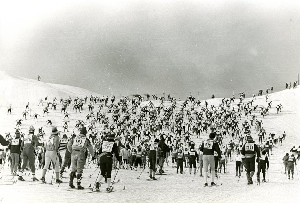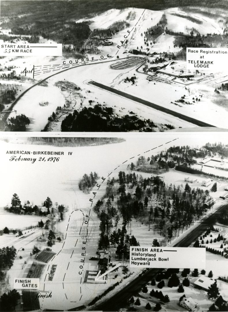 For the first time, the race started at Telemark Resort with skiers climbing up and over the ski hill, and finished at Lumberjack Bowl in Hayward. There were separate starts for the elite and citizen skiers. The “Citizen’s Race” also turned around, starting south of Seeley and finishing at the Lumberjack Bowl. Wax and repair stations were added on the course.