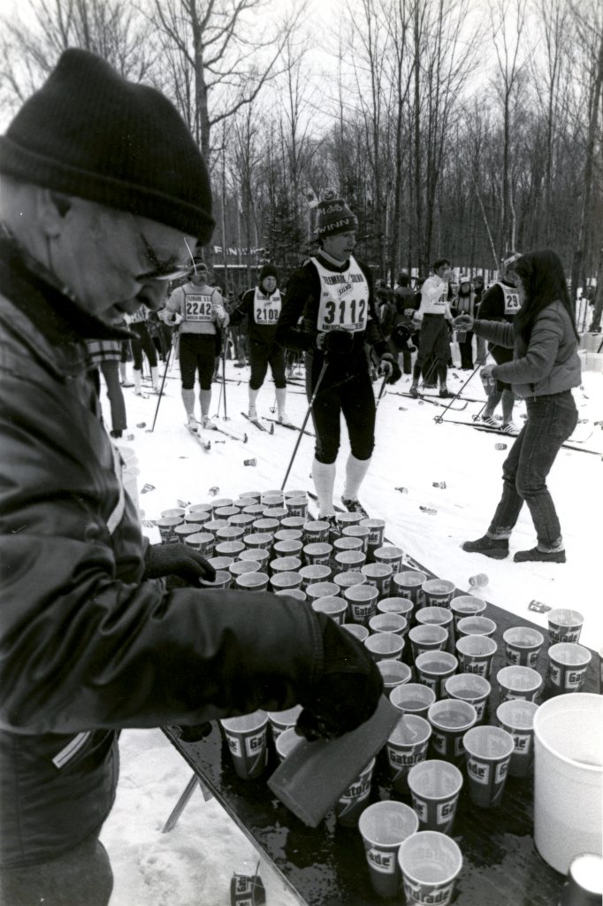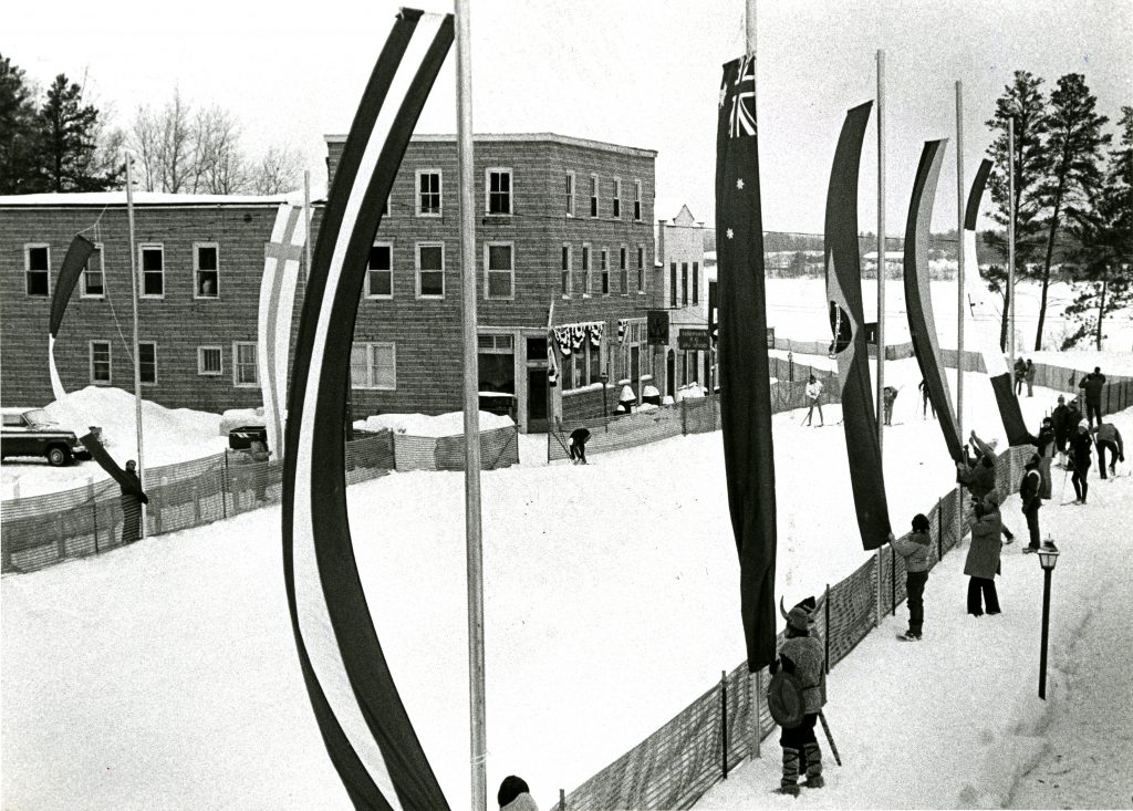 At the request of Tony Wise who attended the first World Loppet race held in Austria earlier that winter, famed ice sculptor Engelbert Hattenberg debuted his first of many extraordinary creations at the American Birkebeiner.