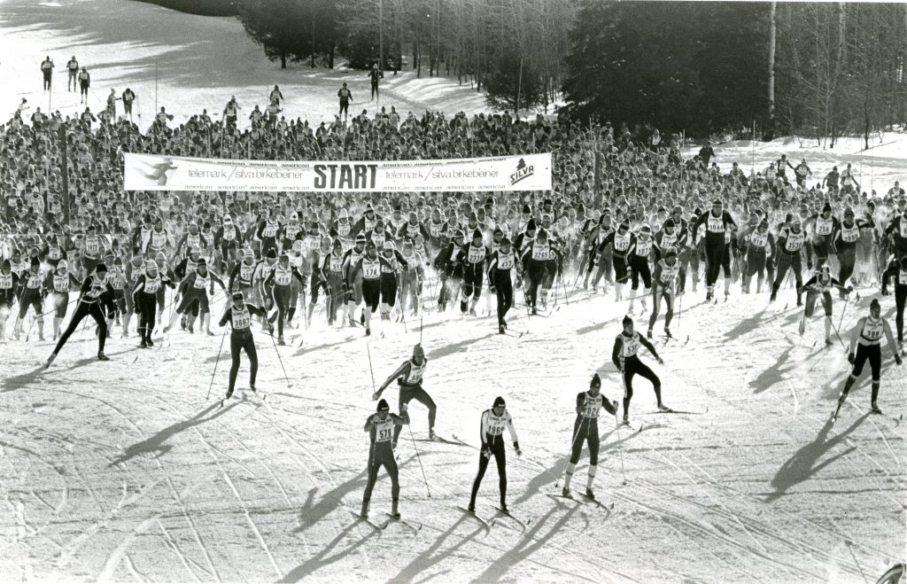 For the last time, skiers started the race climbing up and over Mt Telemark. Women’s classes and awards were made equal to men’s.