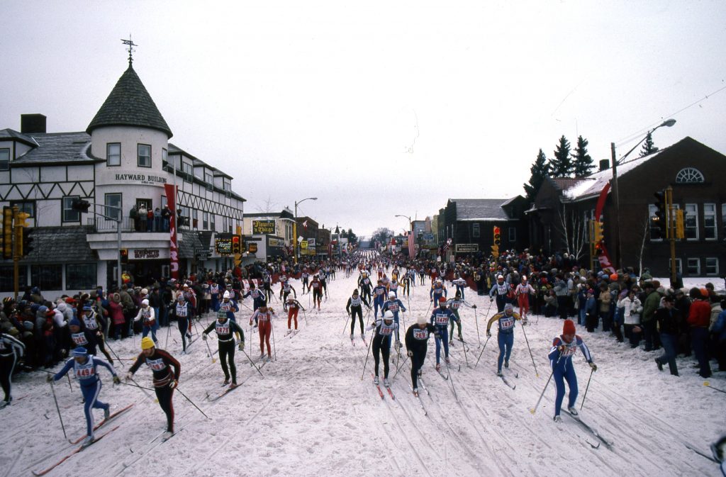 For the first time since 1975 the race start returned to Hayward beginning on the northwest side of town and proceeding down Main Street across Lake Hayward. Nine thousand cubic yards of snow were laid down on Main Street to accommodate the many thousands of participating skiers.