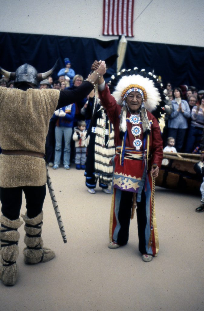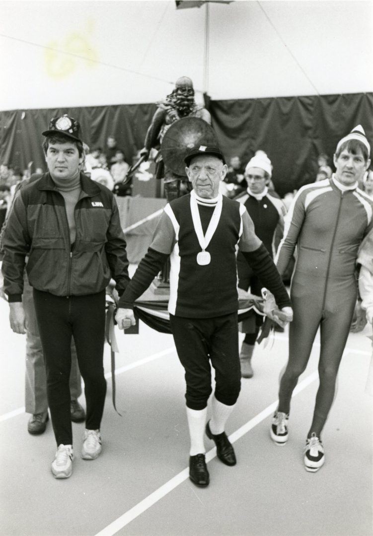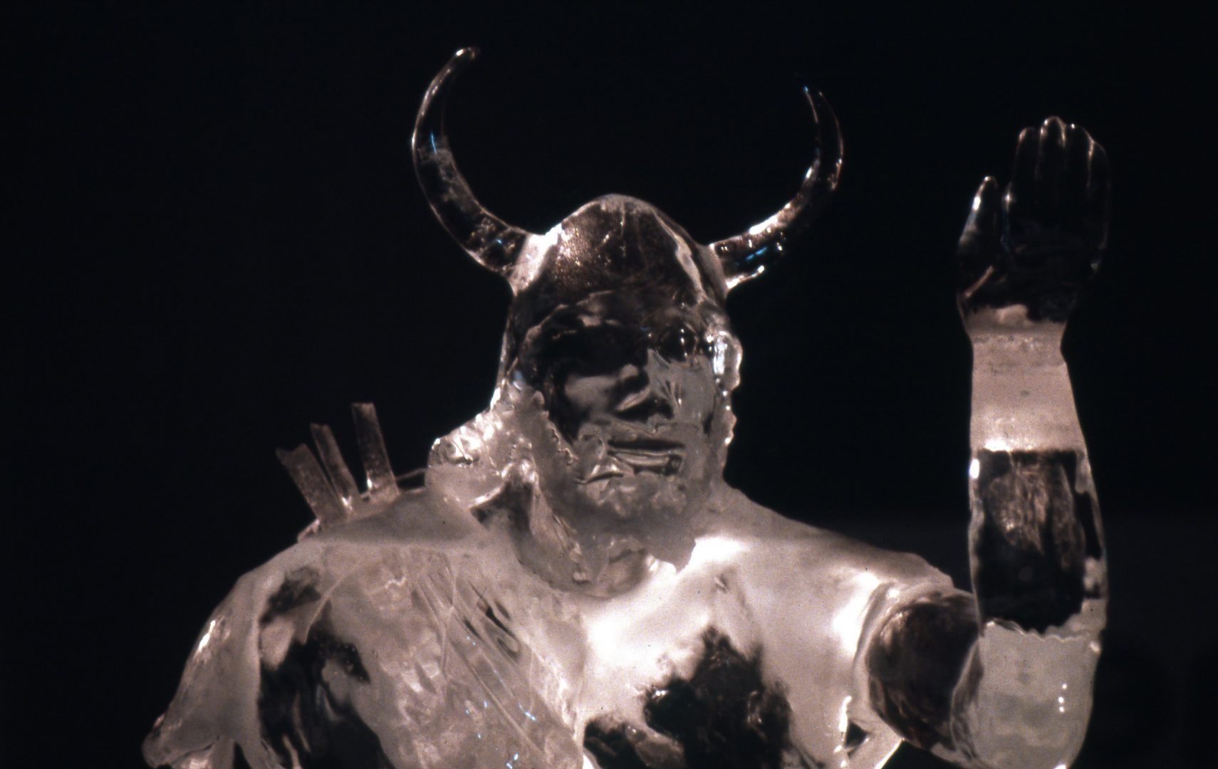 Engelbert Hattenberger, creator of the elaborate ice sculptures, introduced the new Haakon Haakonson trophy for the overall Birkebeiner winner.