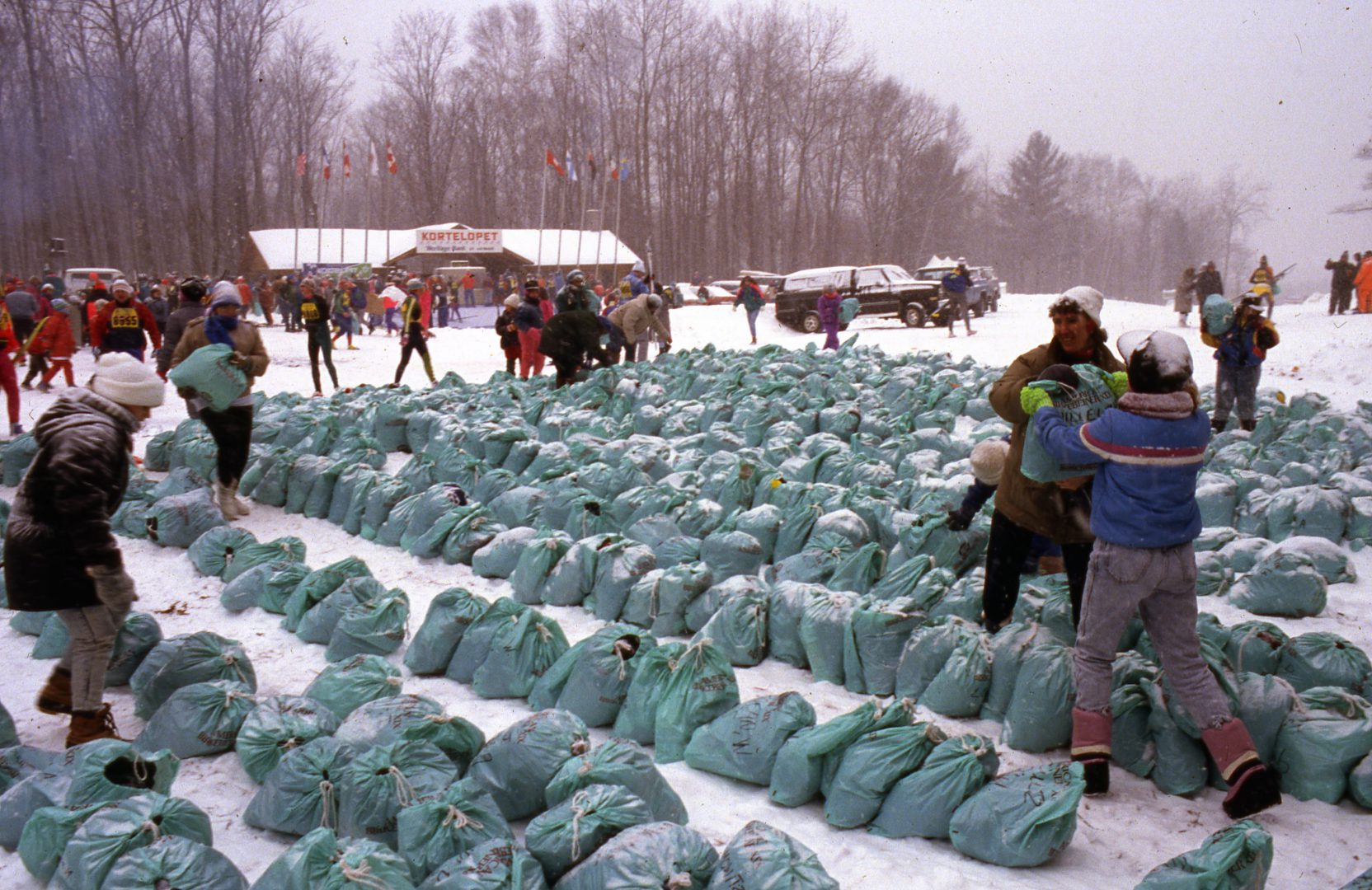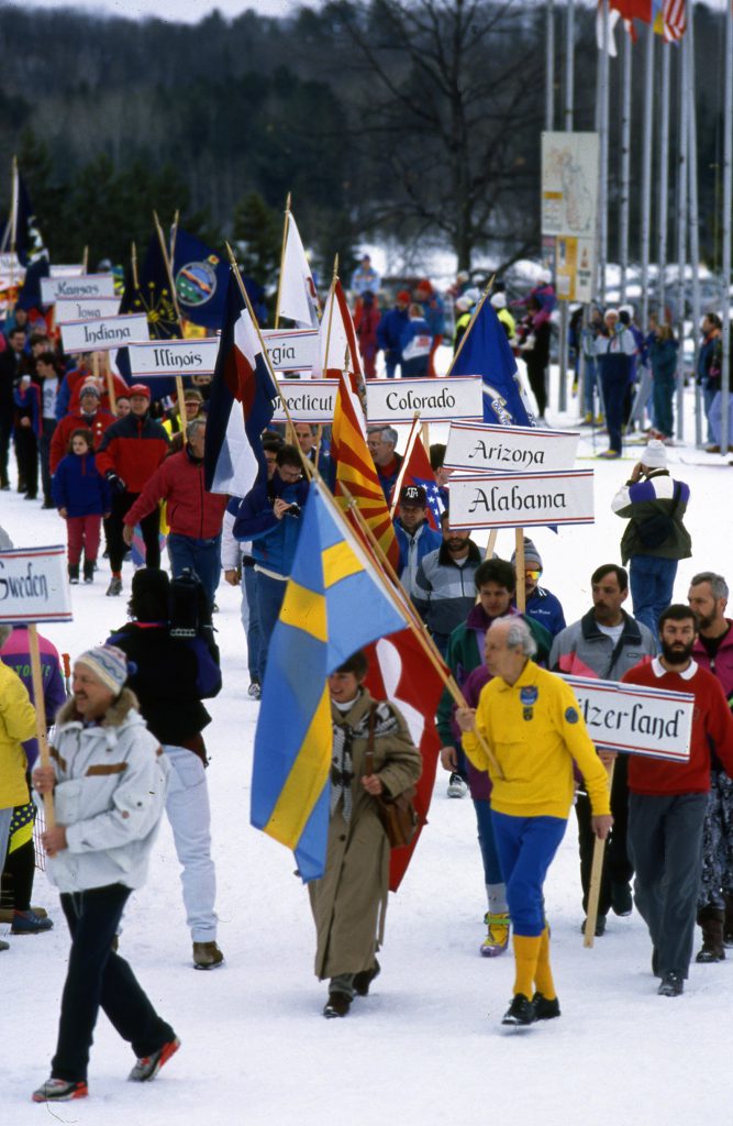 To commemorate the 20th anniversary of the Birkebeiner, the race started at Telemark and finished on Main Street in Hayward. As part of the celebration, a Torch Lighting Relay Run took place on Friday beginning with the lighting of Hayward’s flaming “dish” and continuing on Hwy 63 to light torches in the Seeley and Cable communities. The final lighting took place at the Opening Ceremonies at Telemark Resort.