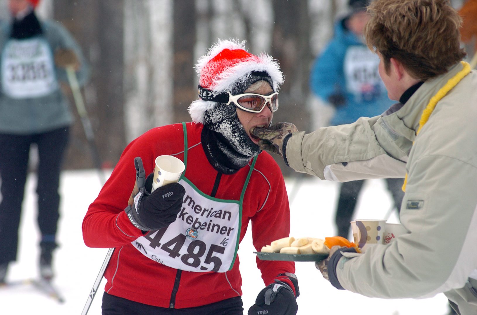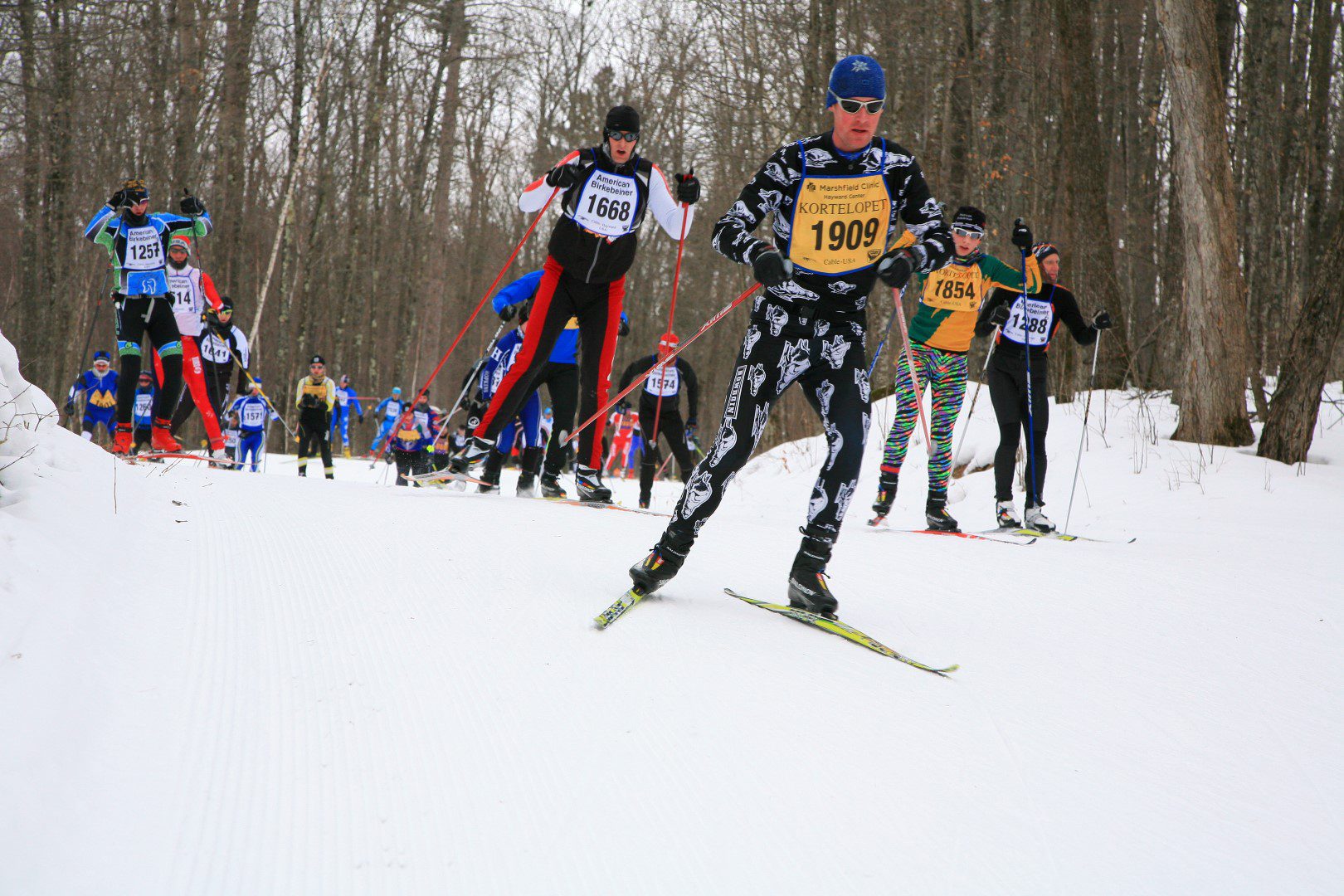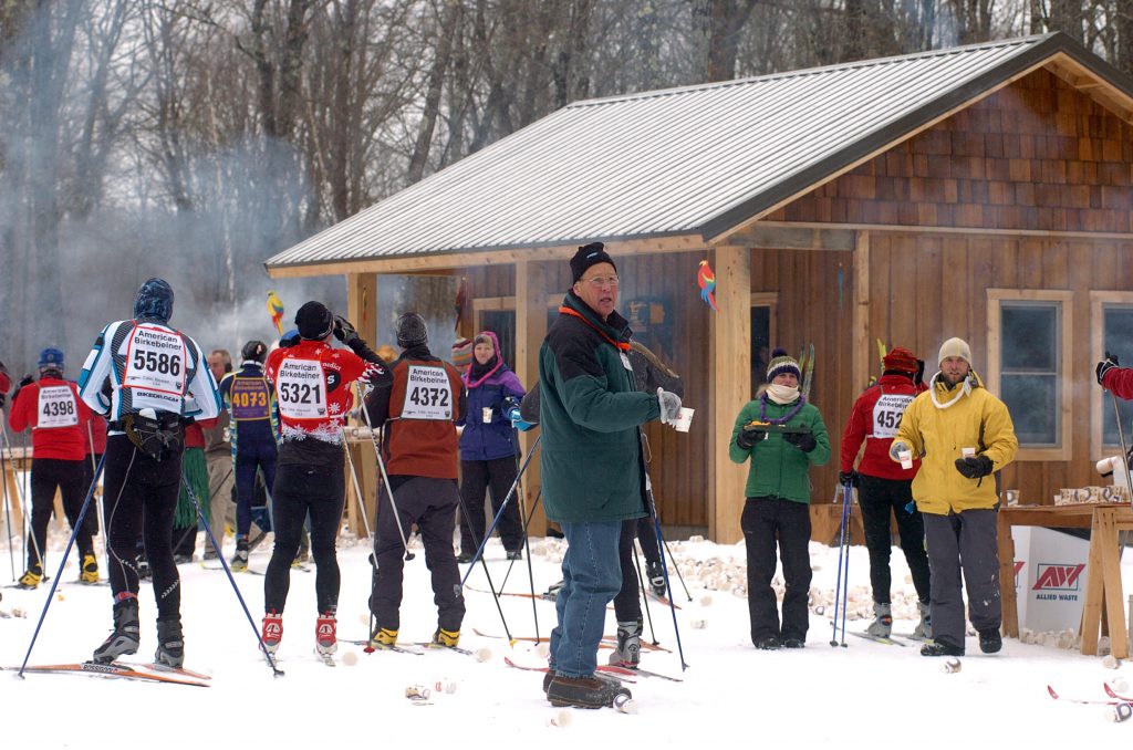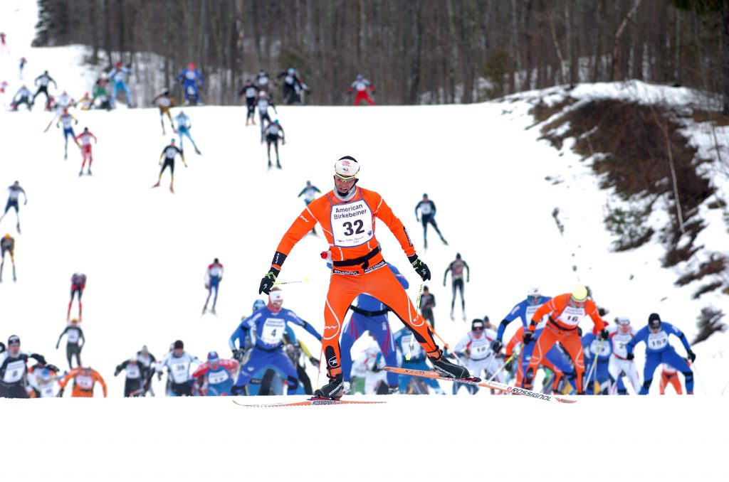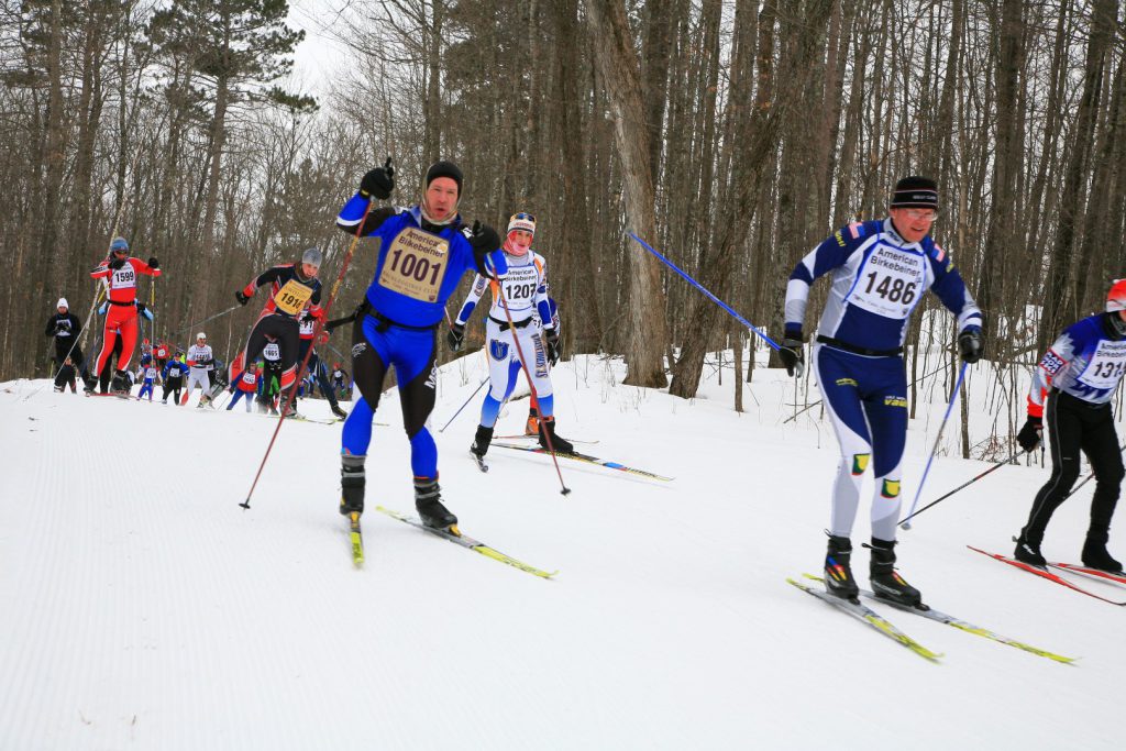 Temperatures hovered around 10 degrees below zero at the start of the race. Honorary Starter, John Schmitt, the “Voice of the Birkie” from 1985 through 2003, welcomed a new record number of skiers to the start line.
