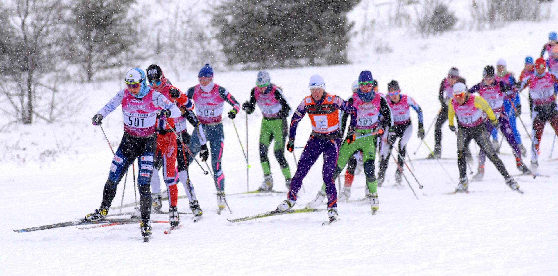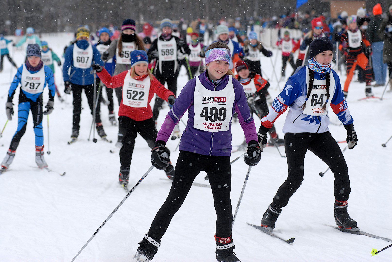 The weather offered a reprieve from below zero temperatures early in the week with temperatures at the start around 15 degrees. Several inches of snow fell through race day morning.