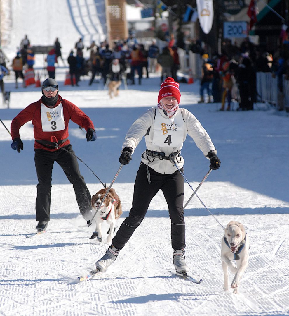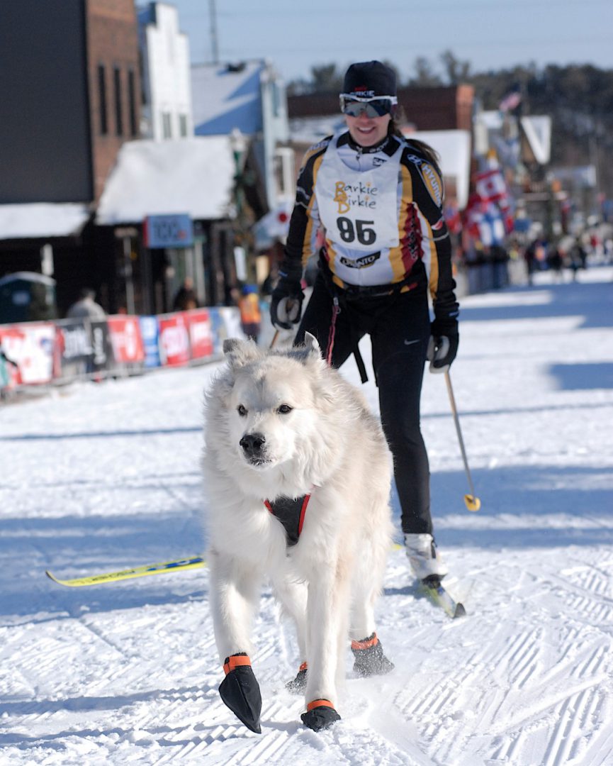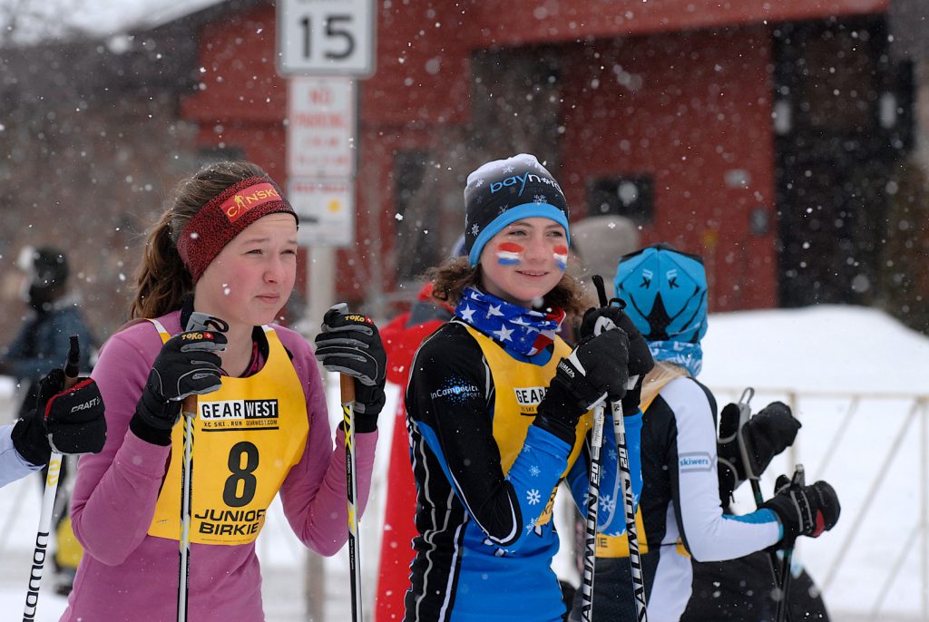 One of the iconic images from the early Telemark Resort days was the International Bridge which skiers crossed as they approached the finish line. For 2015 (and beyond) a new “International Bridge” was constructed which crossed Highway 63 in Hayward just a few blocks before the finish line. The portable bridge was set up mid-week and allowed two lanes of traffic underneath.